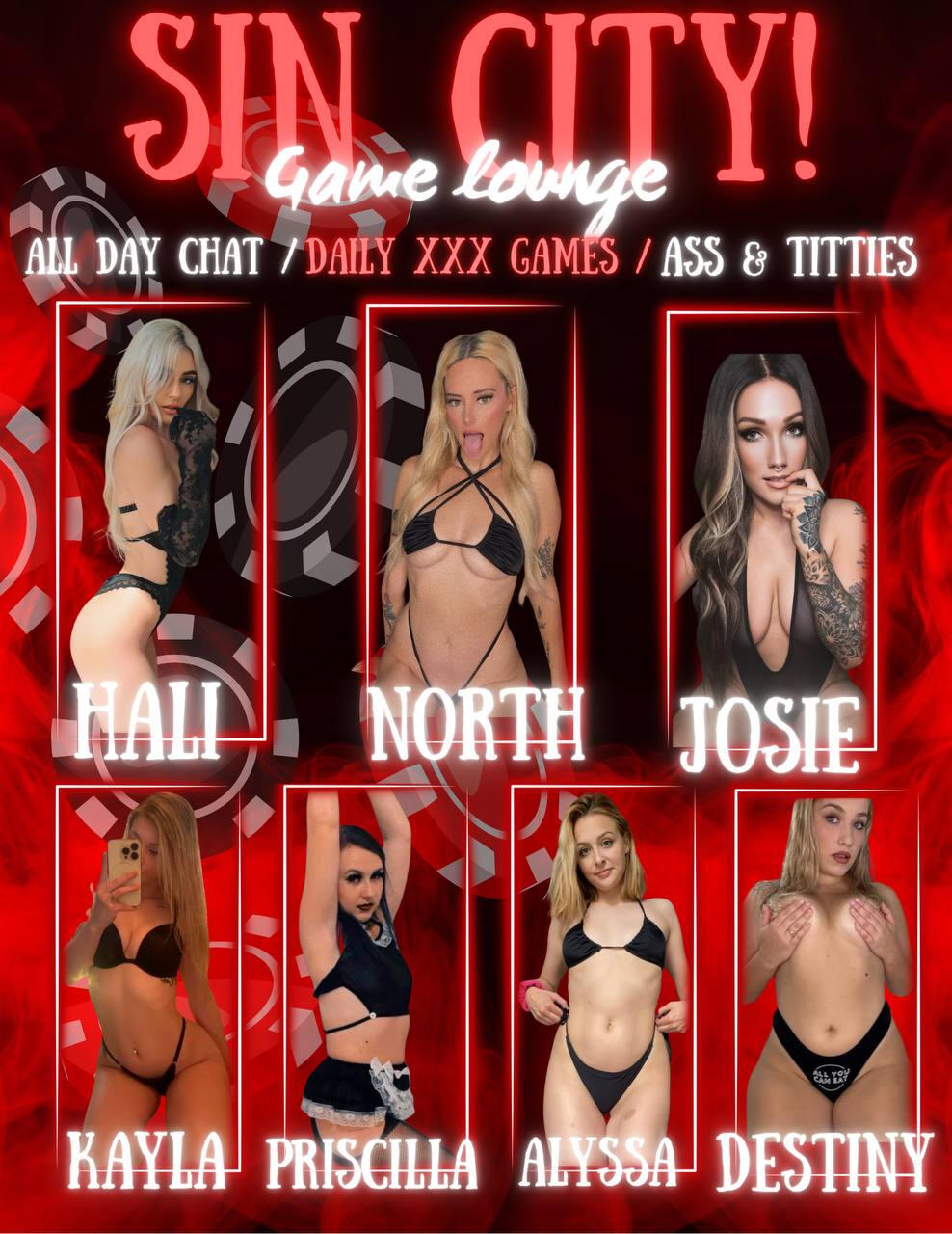 Sin City Interactive Game LoungeOnly $20 if you want to be added to this XXX group chat which includes 24/7 GFE chat, daily interactive games, exclusive 18+ content, & more! 🥵I only need a few more fans to join to hit the minimum so I can be added to the chat myself.💗✨